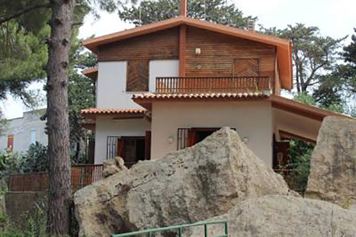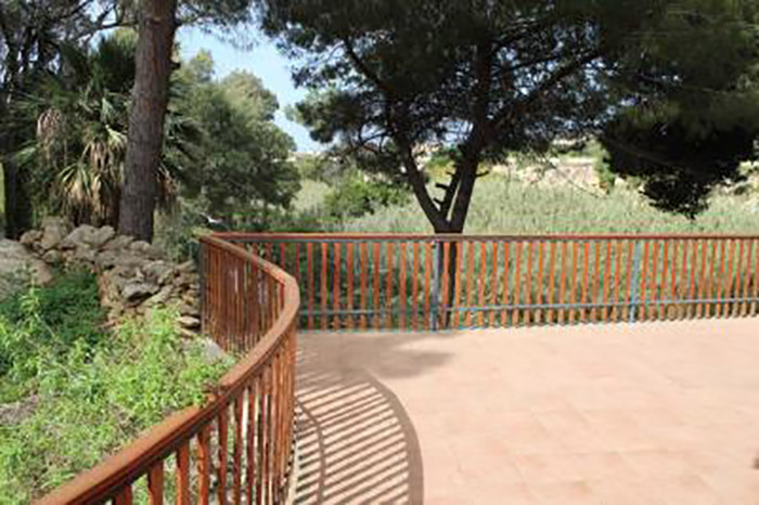 The 8000sqm land is arranged all around the Villa, and consists of a series of plants typical of the Mediterranean scrub with a large cave inside natural which is accessed via stairs and which can also be used as a natural amphitheater.