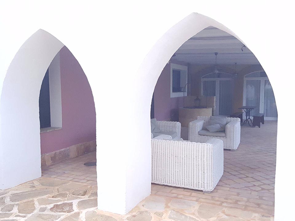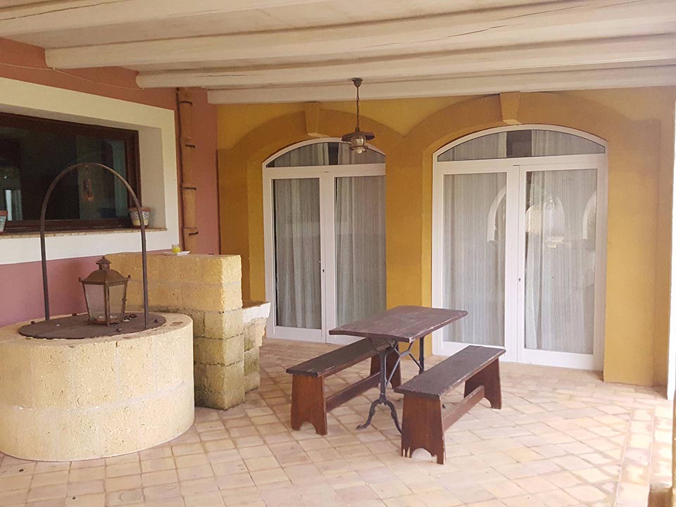 Un gran portón constituye el acceso principal a la propiedad desde el que se accede primero a un patio interior con arcos abovedados que lo rodean, continuando se llega al jardín de 1400m2 adornado con plantas típicas de la vegetación mediterránea entre las que destaca un olivo centenario. la vista. Siempre en el exterior, una gran terraza cubierta con marquesina y vigas de madera desde la que se puede disfrutar de la vista del jardín y la piscina (12m x 6m) es el lugar perfecto para pasar horas de relax donde desayunar por la mañana o cenar. al aire libre durante los días calurosos que representan el clima predominante que son alrededor de siete meses del año.