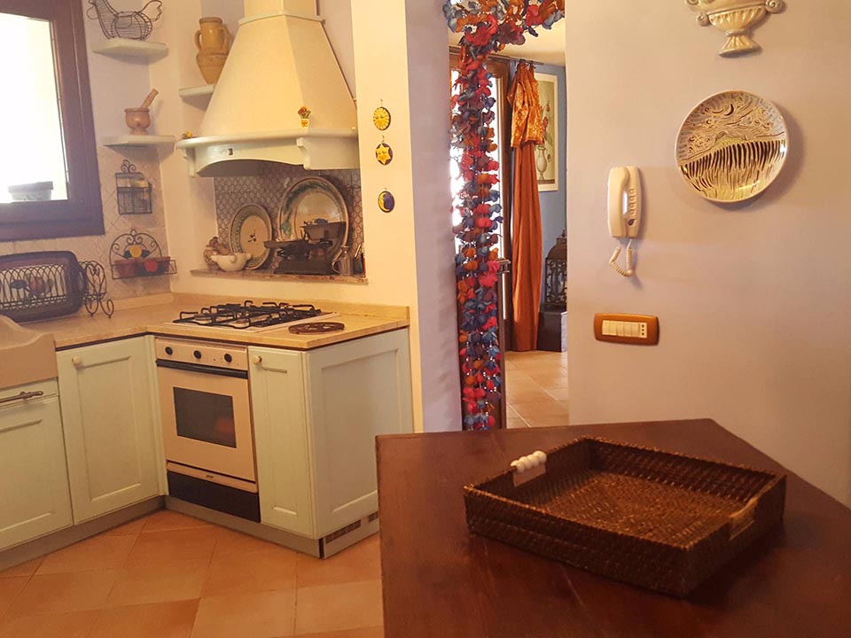- al piano terra da un ingresso-soggiorno con camino e ampie finestre dal quale si può ammirare il verde del giardino, una cucina abitabile in muratura, un bagno ed un’ampio vano con tetto in legno attrezzato con due forni e chiuso a vetrate che guardano il verde esterno;
